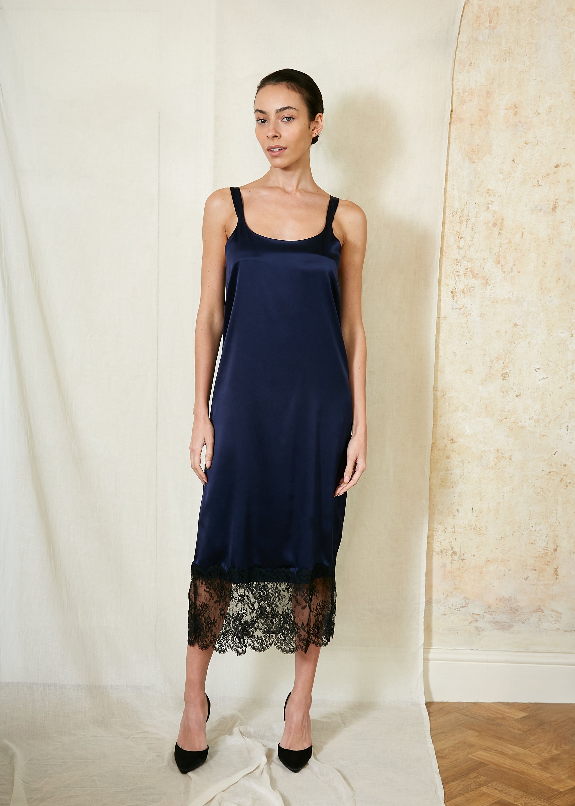 Parasol Rose’s Mae collection combines a clean, modern silhouette with the old-school elegance of French leavers lace which trims the hemlines of the dresses, trousers and camisoles. The relaxed, body-skimming fit promises the ultimate in comfort for luxe lounging and layering.